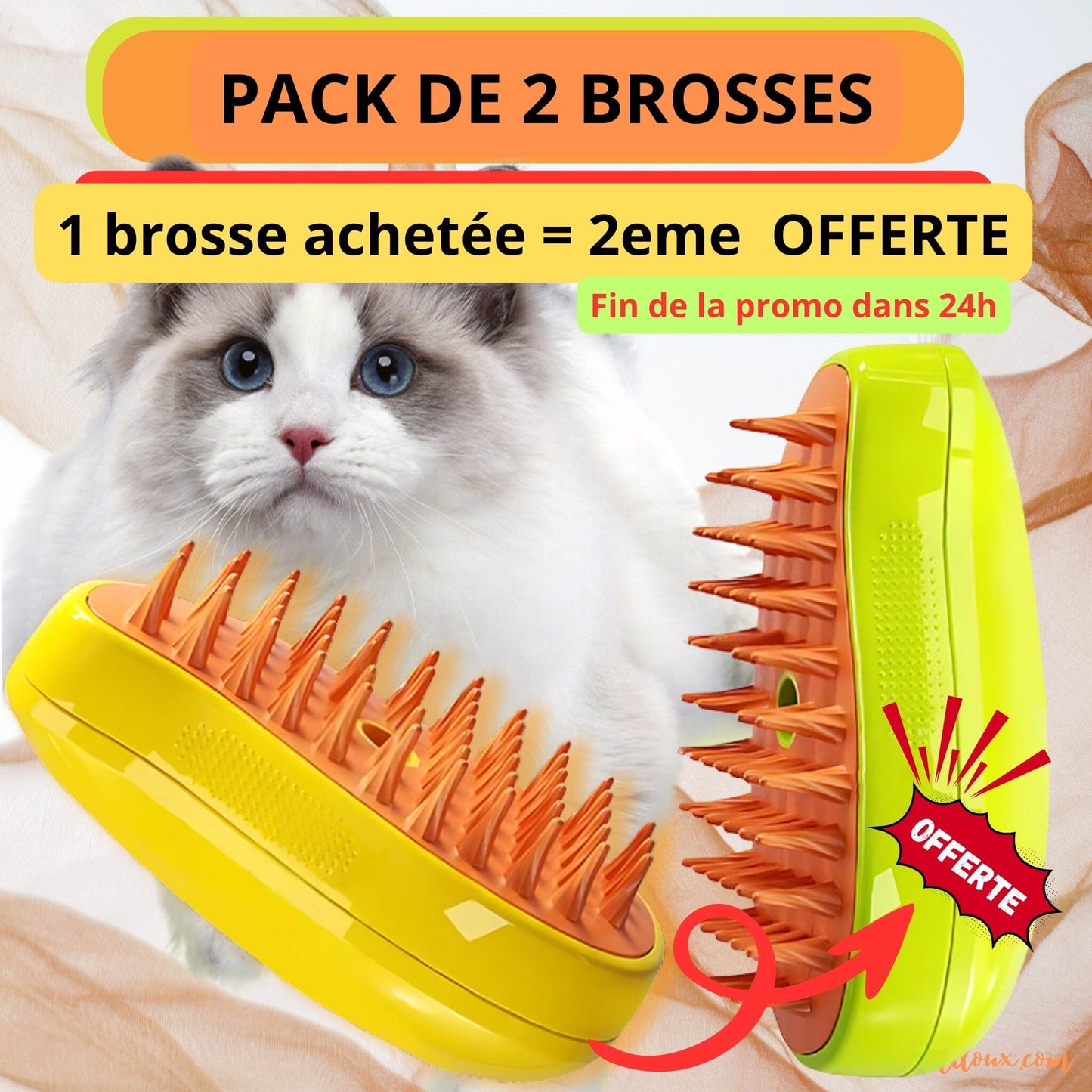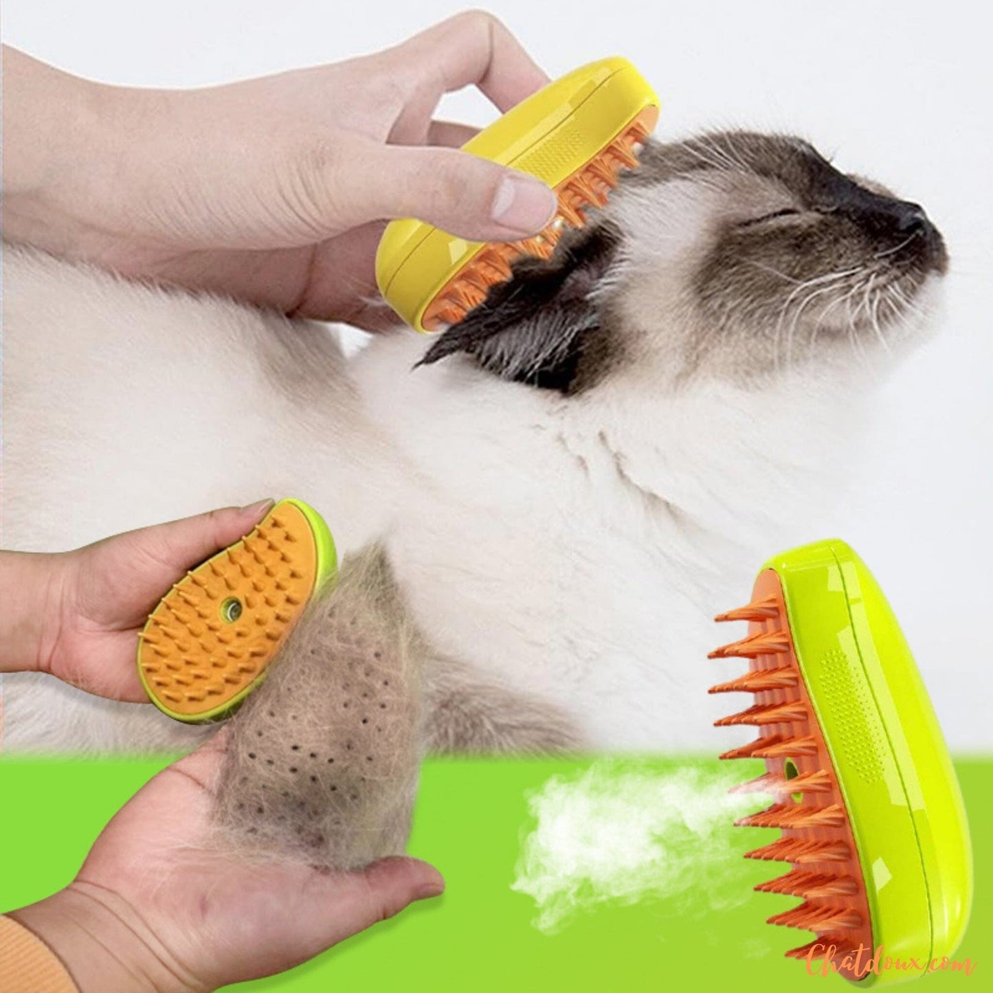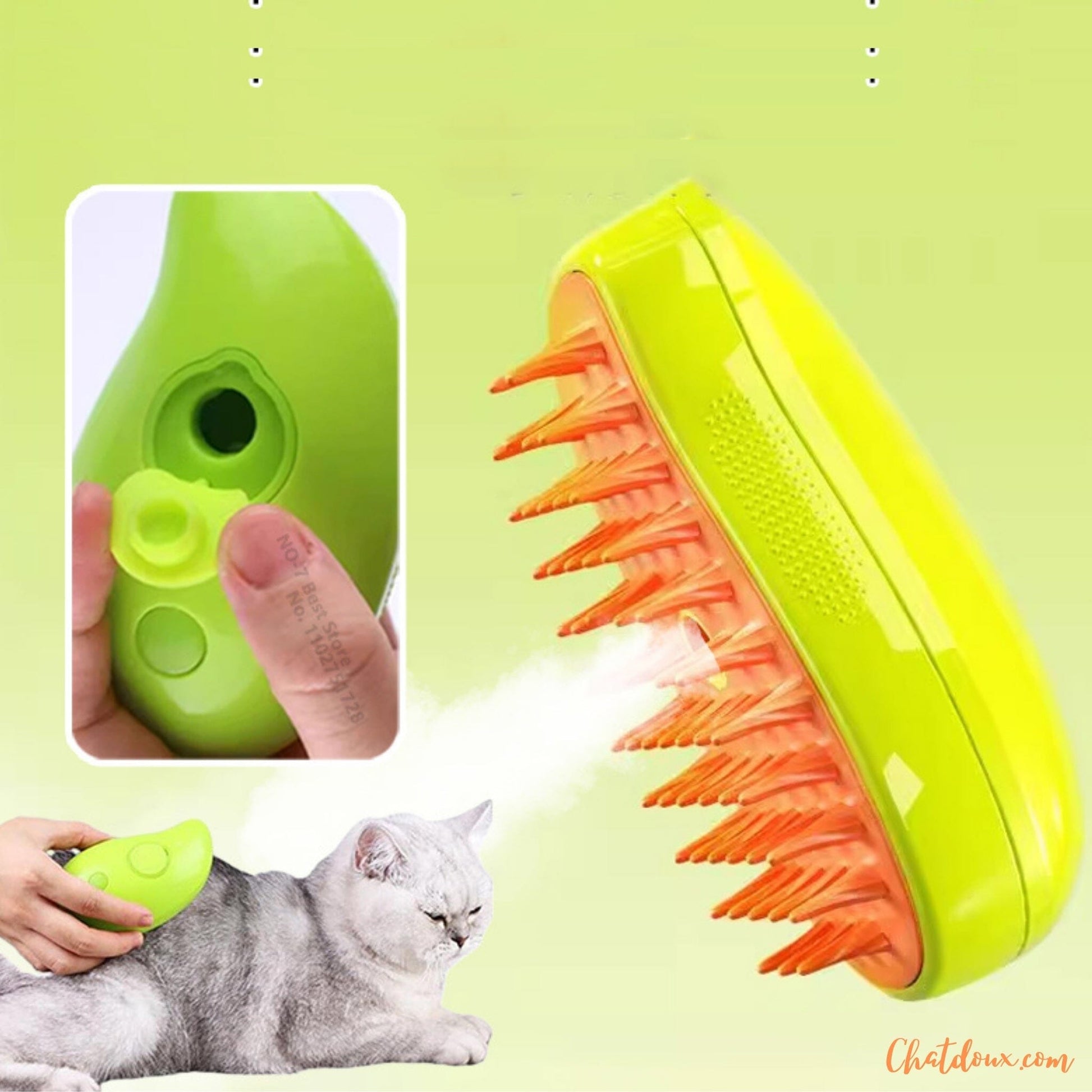 😸 Avec sa fonctionnalité diffuseur de vapeur, permet un meilleur brossage de votre chat mais aussi à éviter que les poils s'envolent durant le brossage