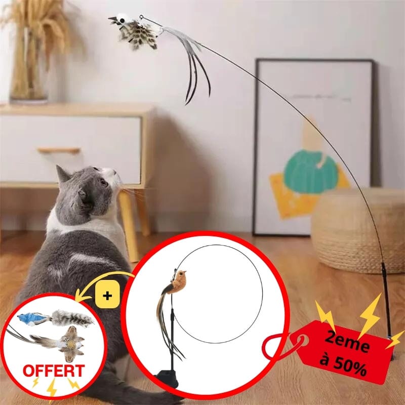 Notre canne a peche chat est le jouet interactif parfait pour stimuler l'instinct de chasseur de votre chat.