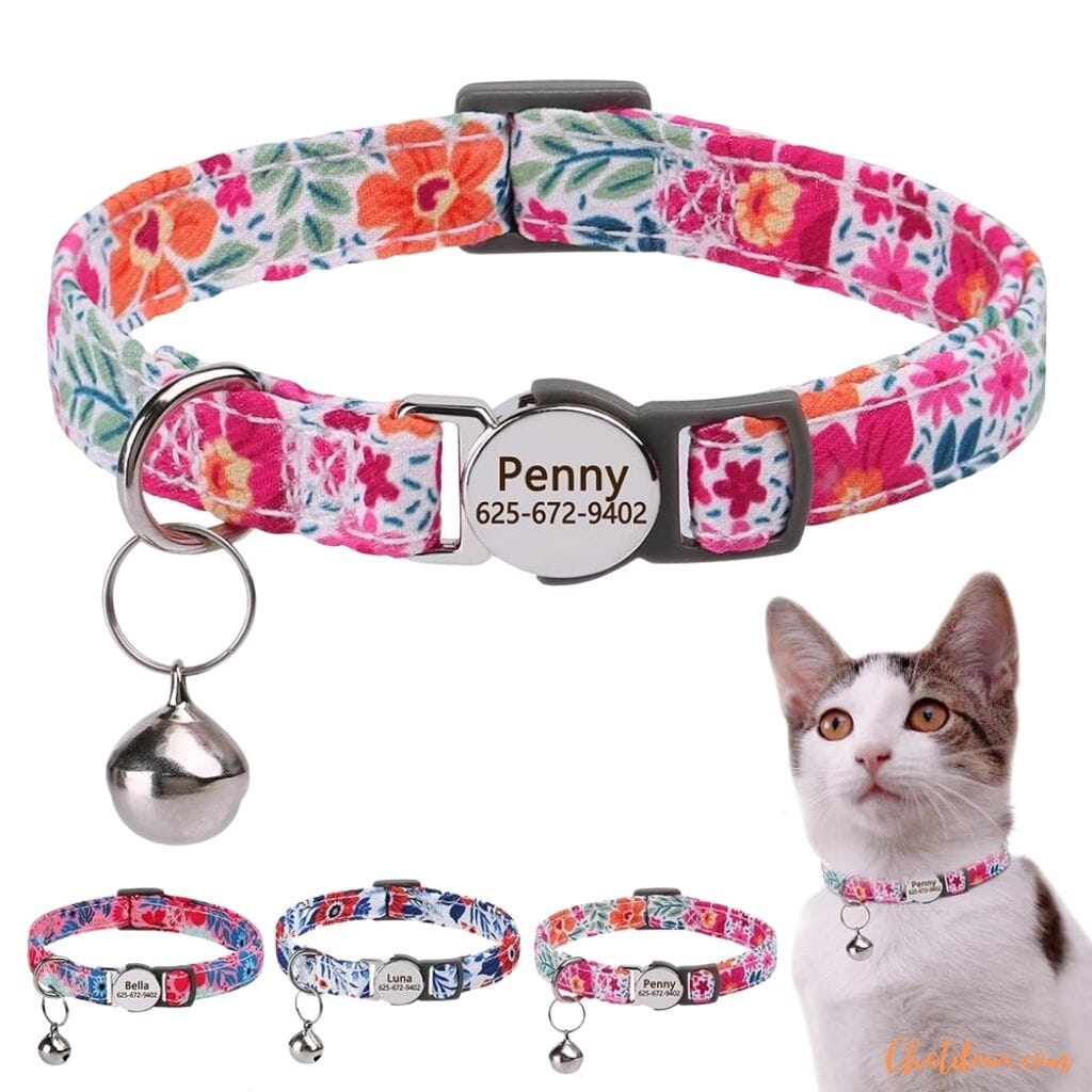 Découvrez notre Collier chat personnalisé Fleury™, ajustable et personnalisable, à motif floral, élégant et moderne.