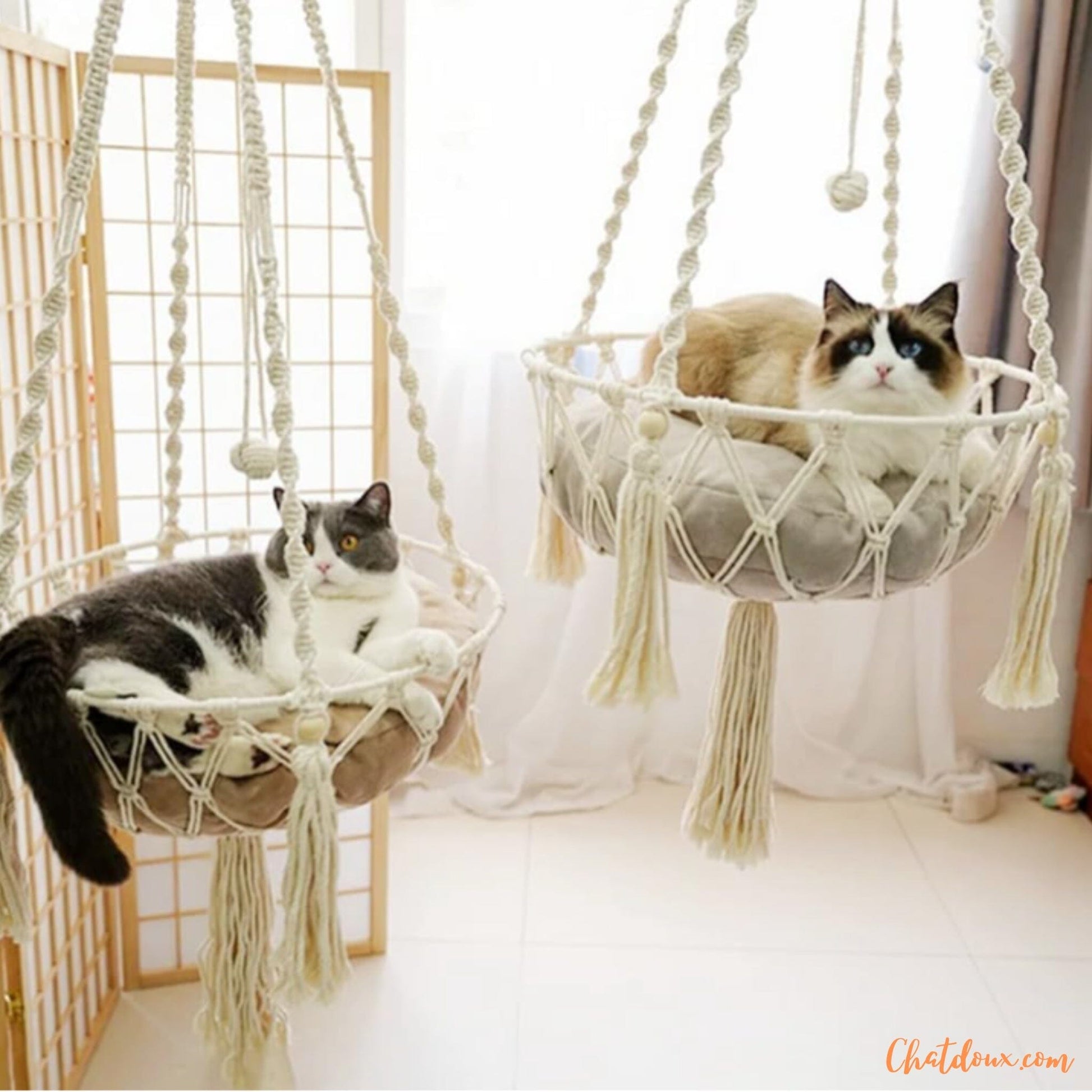 Hamac pour chat suspendu | Élégance et confort tissés à la main